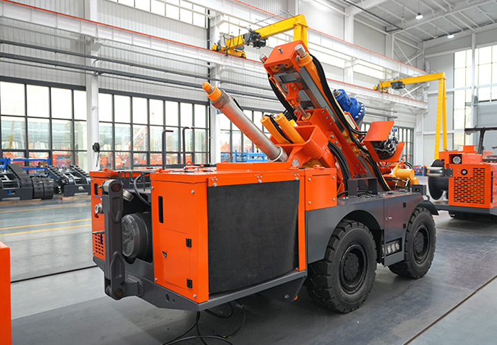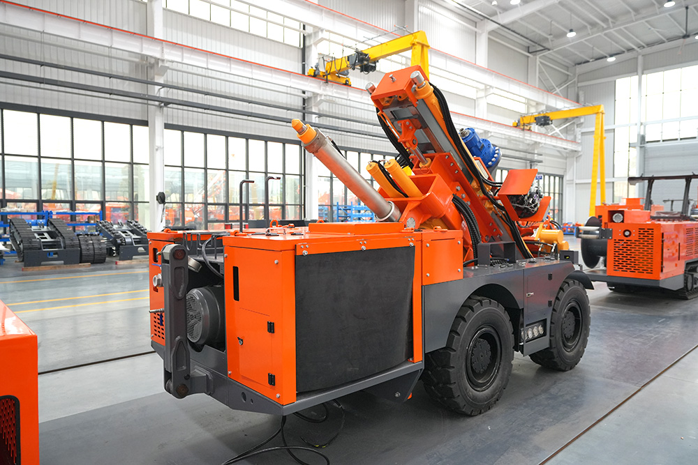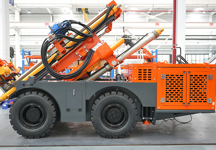 KODT-125是一款輪胎式礦用潛孔鉆機(jī),電壓等級(jí):380V,采用潛孔沖擊器作業(yè),閉式四驅(qū)液壓系統(tǒng),適用于3.3-4m地下采場(chǎng)環(huán)形孔的穿鑿,是專用的穿孔設(shè)備,也可用于天井和斜井的開(kāi)鑿及回采作業(yè)。主要功能和裝置如下:適用于鉆孔直徑范圍120-254mm,鉆孔深度0-100m;鉆架可環(huán)向360°旋轉(zhuǎn),前后-10°-55°度擺動(dòng),適用于環(huán)向打孔;鉆臂裝載有液壓穩(wěn)桿機(jī)構(gòu),保證鉆孔直度,偏斜率≤1%;機(jī)身配有頂升支腿和后擺動(dòng)橋,可在路面坑洼惡劣條件下工作;設(shè)備四驅(qū)驅(qū)動(dòng),可實(shí)現(xiàn)360°轉(zhuǎn)彎,原地掉頭;長(zhǎng)距離移動(dòng)時(shí),設(shè)備可解鎖制動(dòng),且配備牽引,方便使用拖車進(jìn)行快速移動(dòng);鉆機(jī)回轉(zhuǎn)具有無(wú)級(jí)調(diào)速功能,可根據(jù)不同巖層狀況調(diào)整鉆速,提高效率;且設(shè)備配置遙控裝置,方便操作人員操作設(shè)備的同時(shí),提高了操作安全性和可靠性;設(shè)備配備了沖洗裝置,方便操作人員清理設(shè)備,維持設(shè)備整潔,提高設(shè)備使用壽命。
